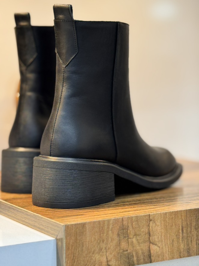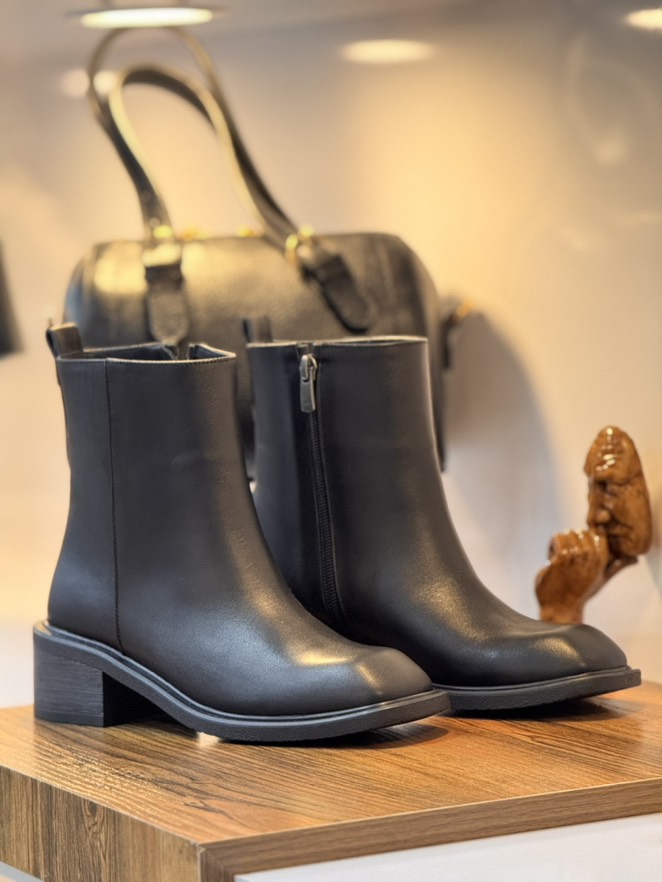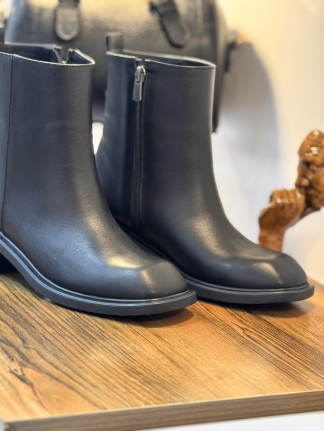 بوت چرمی زنانه مشکی مدل Minimal Luxe، ترکیبی از استحکام و لطافت است؛ طراحی مینیمال آن با جنس چرم گاوی طبیعی و پوشش مات، جلوه‌ای از سادگی لوکس را تداعی می‌کند.