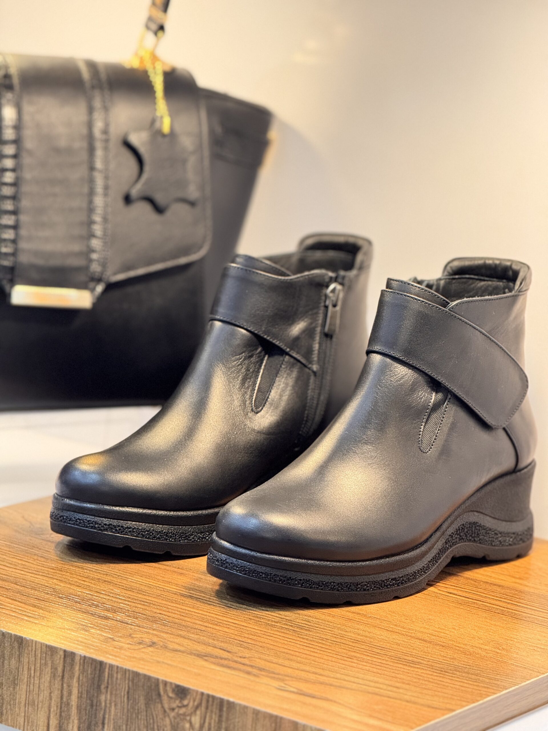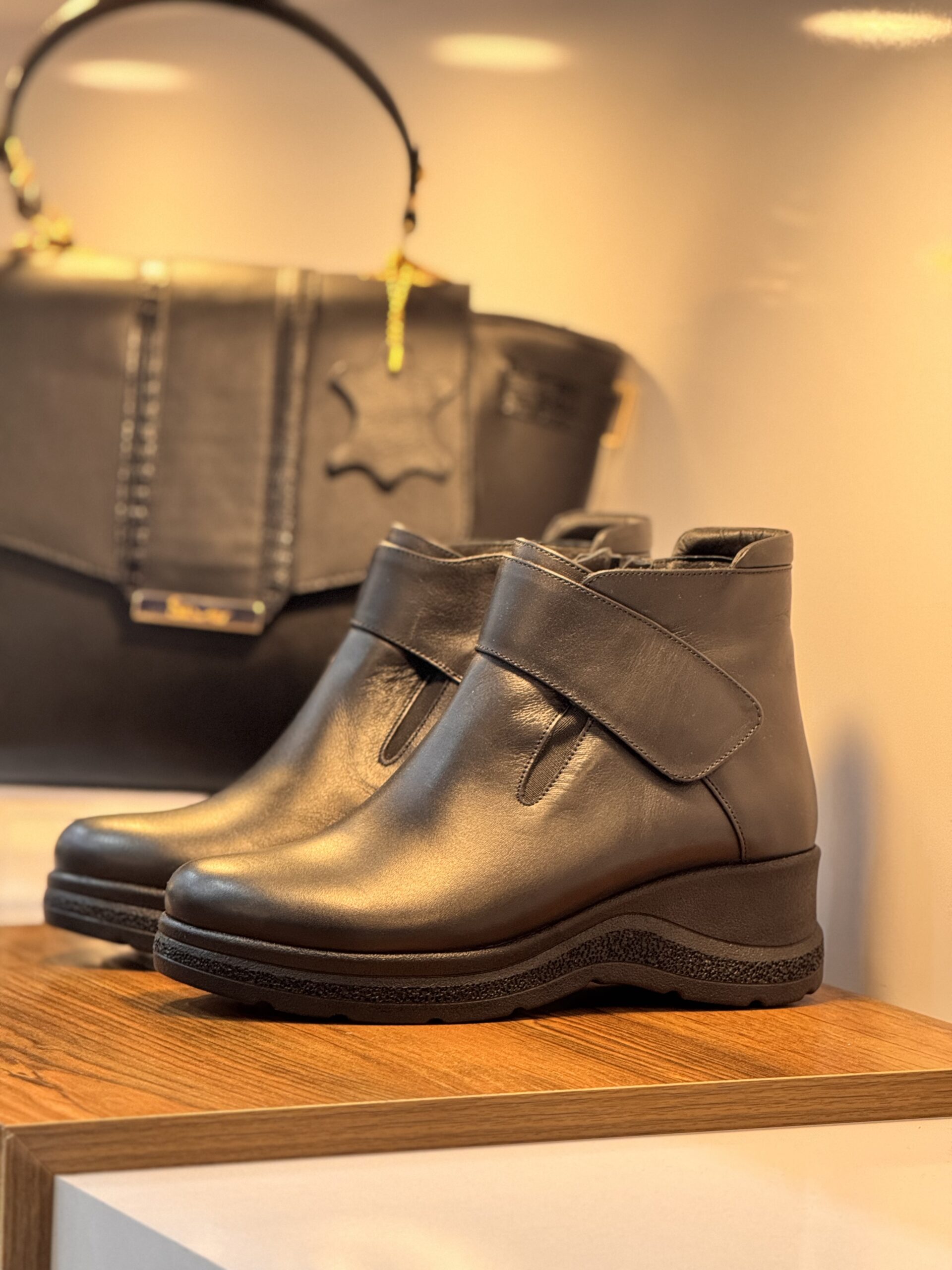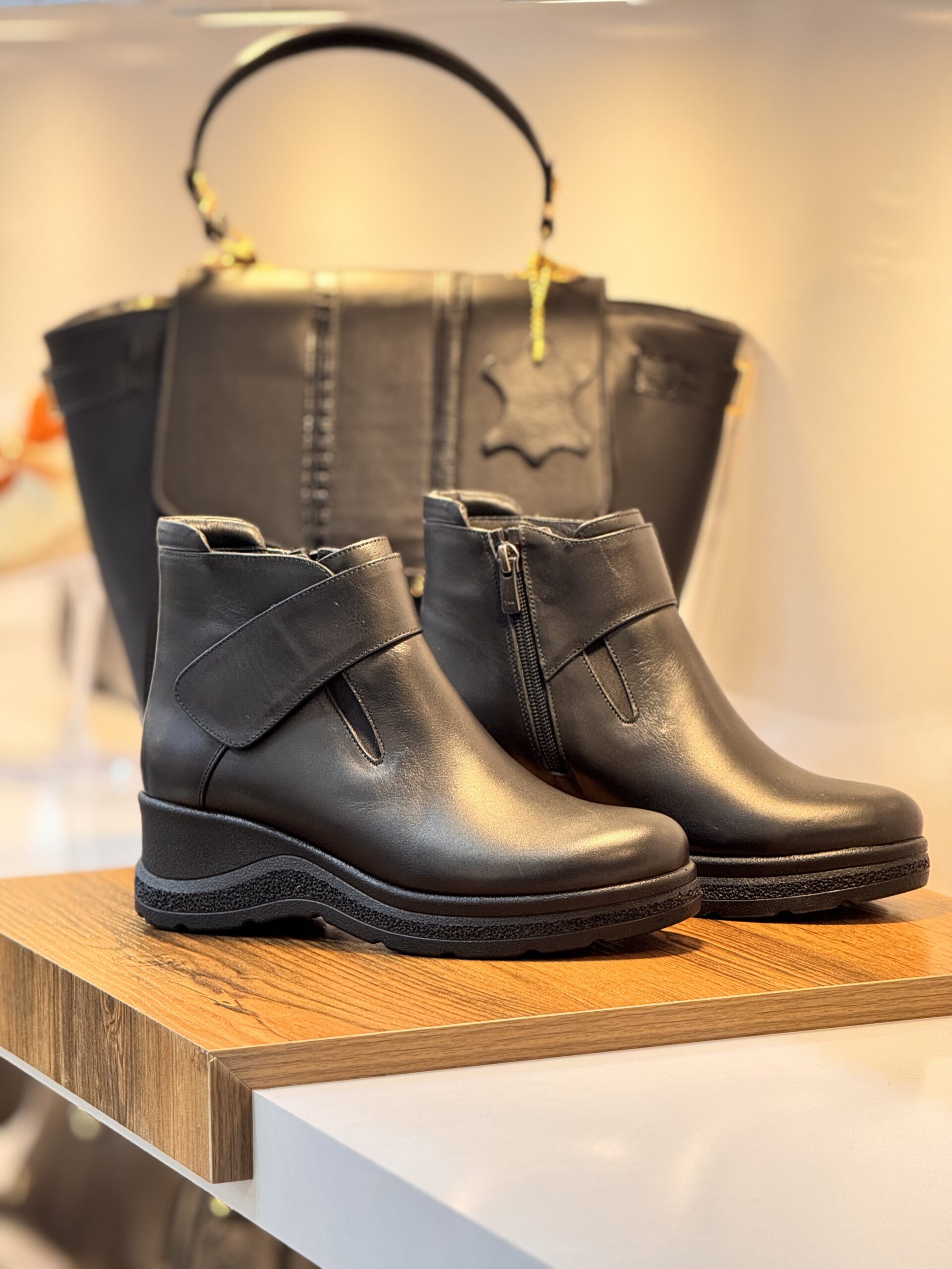 این بوت زنانه چرمی مشکی با طراحی مینیمال و ظریف خود، انتخابی ایدهآل برای استایل روزمره لوکس است. چرم نرم و یکدست، حس لمس ابریشمی و بافت باکیفیت را منتقل میکند؛ دقیقاً همان جذابیت آرامی که در سبک quiet luxury دیده میشود.