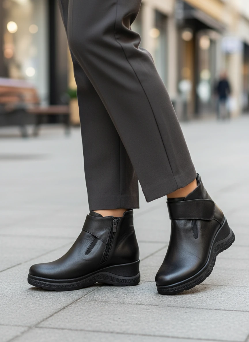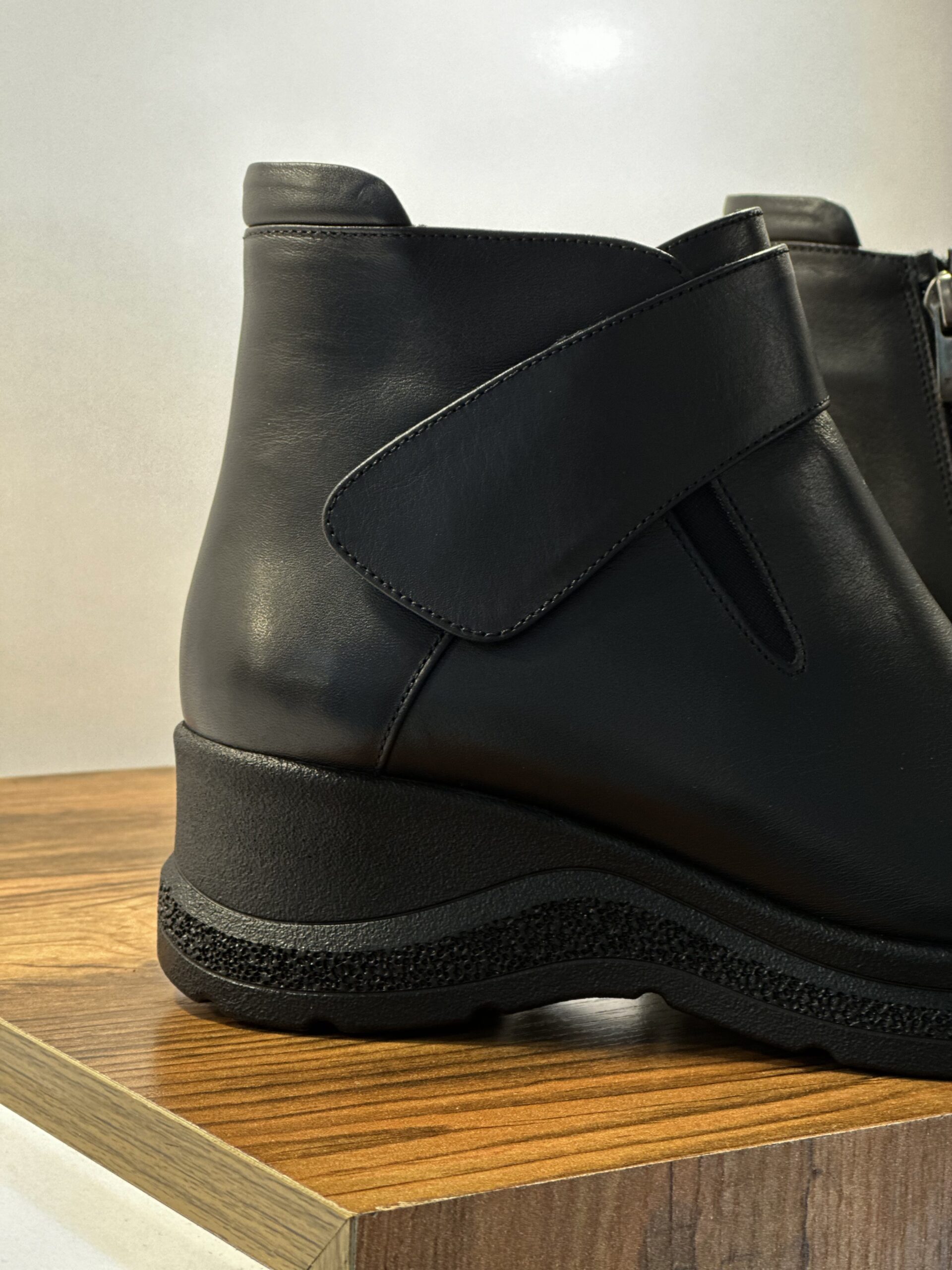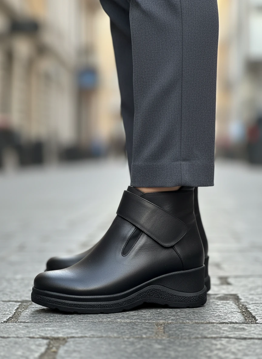 این بوت زنانه چرمی مشکی با طراحی مینیمال و ظریف خود، انتخابی ایدهآل برای استایل روزمره لوکس است. چرم نرم و یکدست، حس لمس ابریشمی و بافت باکیفیت را منتقل میکند؛ دقیقاً همان جذابیت آرامی که در سبک quiet luxury دیده میشود.